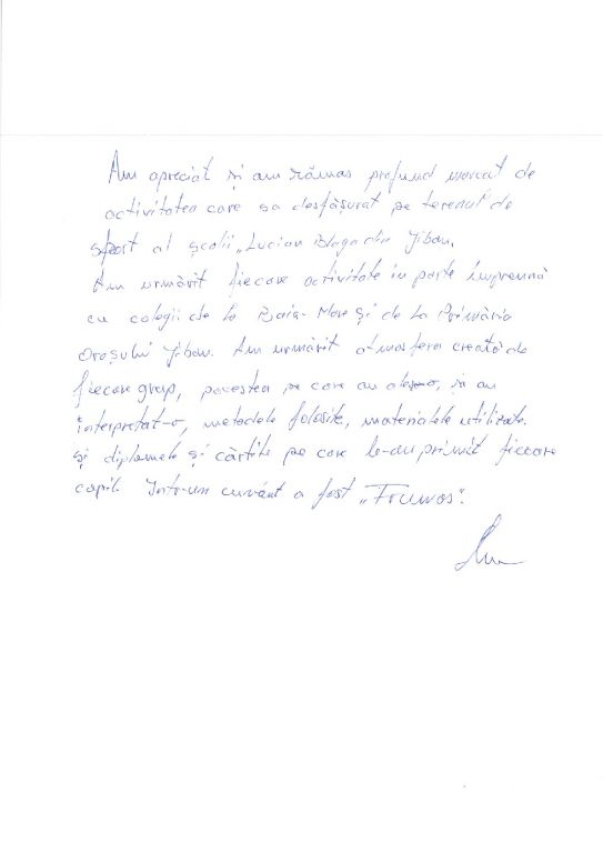 Copiii de la Școala Gimnazială “Lucian Blaga” din Jibou (Sălaj), prichindei din clasele primare, alături de care ne-am bucurat recent cu ocazia unei acțiuni numite “Covorul cu povești”, ne-au mulțumit că am făcut împreună din “Cei trei purceluși” o amintire de neuitat. Iată scrisorilele lor: